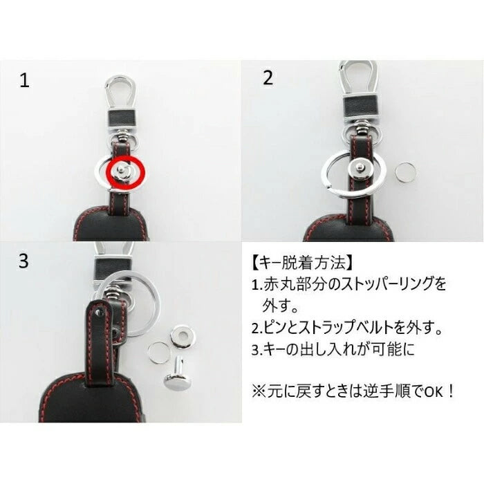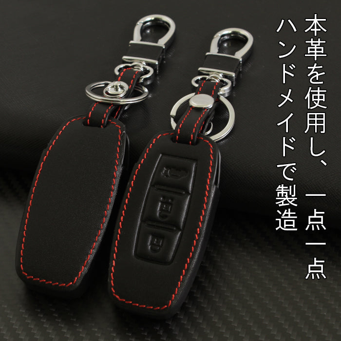 三菱 ミツビシ 本革 キーケース アウトランダー PHEV GN系 トライトン LC系 新型 ブラック レッドステッチ キーカバー レザー キーホルダー メンズ レディース おしゃれ スマートキー アクセサリー カスタム パーツ
