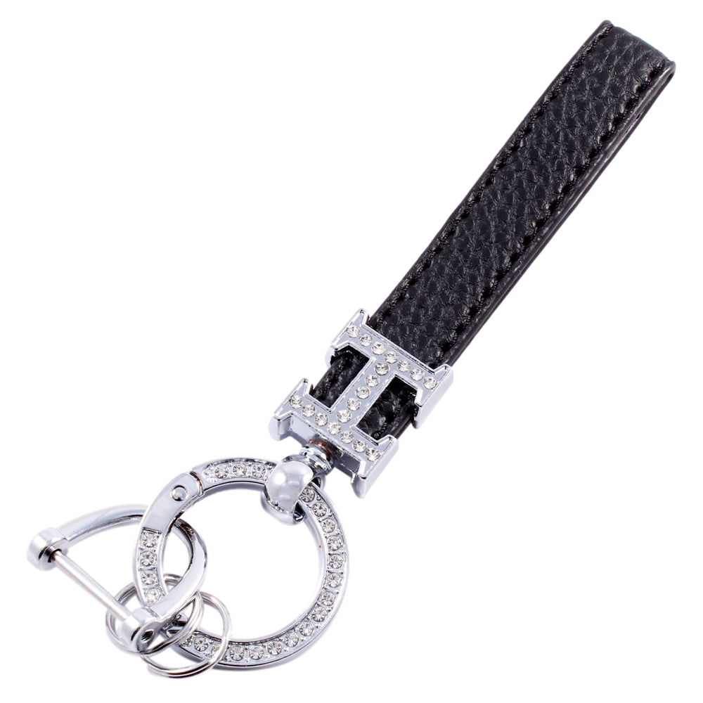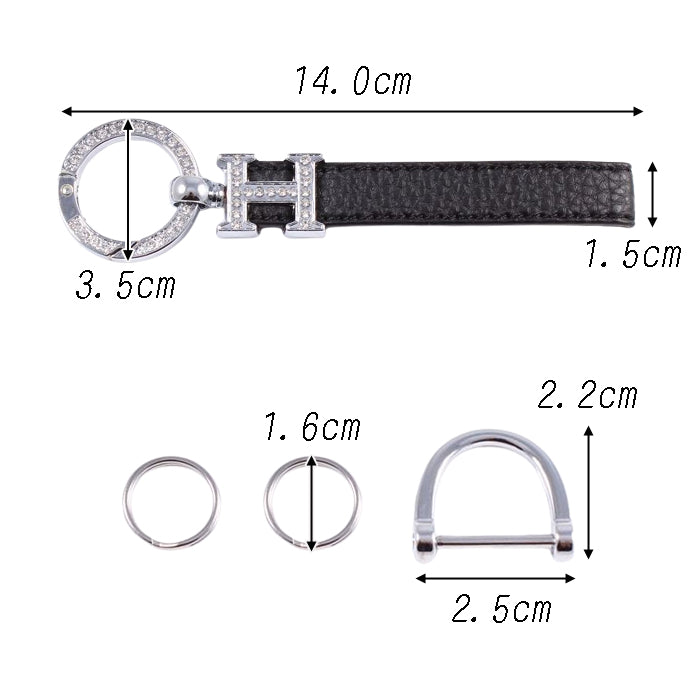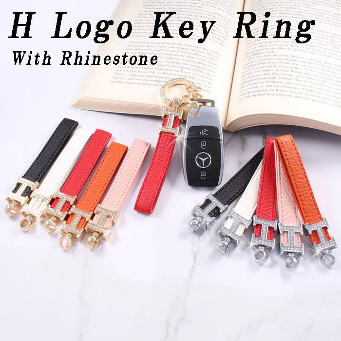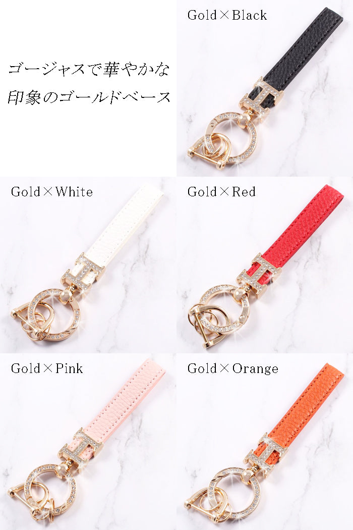 Hロゴ キーホルダー ラインストーン キーリング ストラップ シルバー ゴールド チャーム レザー 革 おしゃれ オシャレ かわいい 可愛い 大人 レディース メンズ 金具 鍵 車 ギャル パーツ キラキラ