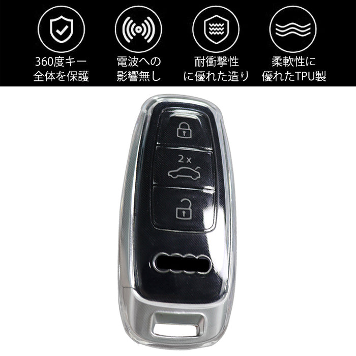 アウディ クリア TPU キーケース キーカバー A3 A6 A7 A8 Q7 Q8 S3 S6 S7 S8 RS3 e-tron eトロン アバント セダン スポーツバック クーペ ロードスター AUDI 透明 キーホルダー メンズ レディース スマートキー アクセサリー カスタム パーツ