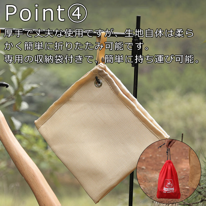 スパッタシート Lサイズ 1.0m×0.8m 焚火シート 焚き火シート 防火シート グラスファイバー製 耐熱温度 約800度 ハトメ付き 焚火台 焚き火 たきび たき火 シート アウトドア キャンプ キャンプファイヤー 耐熱シート 耐火シート マット