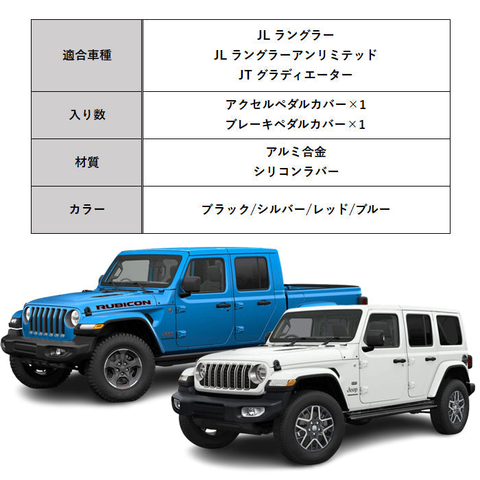 Jeep JL ラングラー ラングラーアンリミテッド JT グラディエーター ペダルカバー アルミ製 ジープ ルビコン ブレーキ アクセル ペダル カバー 滑り止め ラバー アクセサリー カスタム パーツ カスタムパーツ 内装 ドレスアップ