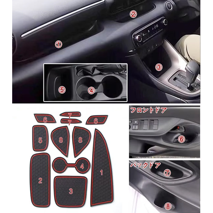 トヨタ 10系 200系 ヤリス ノンスリップ ラバーマット 1台分 11枚セット ノンスリップマット ドリンクホルダー 専用 ドアポケット マット インテリア ゴムマット アクセサリー カスタム パーツ カスタムパーツ 内装パーツ 収納 YARIS 便利グッズ