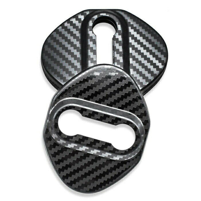 ドア ストライカー カバー 4個セット カーボン柄 ステンレス製 トヨタ ホンダ ダイハツ スズキ ニッサン マツダ ドアロック アクセサリー カスタム パーツ ステッカー ヒンジ カスタマイズ 車用品 カーインテリア ドレスアップ 内装パーツ