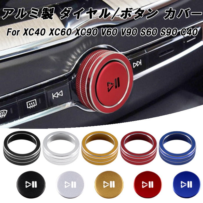 VOLVO ボルボ オーディオ ダイヤル カバー リング ボタンカバー XC40 XC60 XC90 V60 V90 S60 S90 C40 リチャージ アルミ製 音量 調整 ボリューム 再生 停止 アクセサリー カスタム パーツ カスタムパーツ ステッカー シール 内装 ドレスアップ